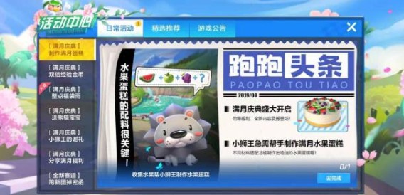 跑跑卡丁车手游满月盛典活动已经开启,满月盛典有一个制作蛋糕的任务,小狮王在做满月蛋糕,这个蛋糕的配料是什么?怎么才能完成满月蛋糕的制作?满月蛋糕制作任务的完成方法,下面会有详细的攻略分享,各位可以参考参考。