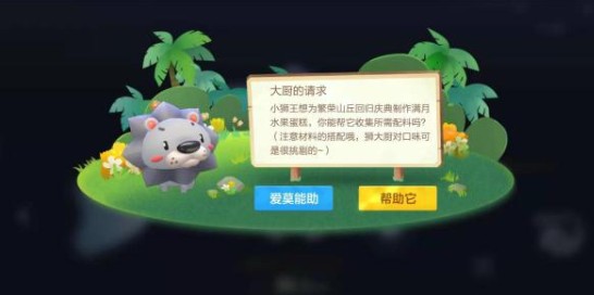 当我们触发了小狮子的对话以后,我们便会收到小狮子的请求。在这里,也希望大家不要调皮,我们只需要点一下帮助它,就可以出发任务了。
