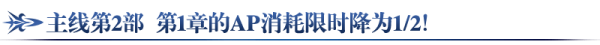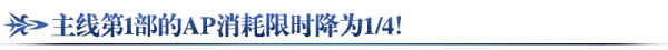 主线第1部(特异点F至终局特异点)的AP消耗量将在永久降为1/2的基础上再次减半,限时降为1/4!