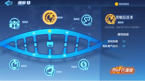 潜能系统通过改变或者增强车手的属性,让车手实力获得大幅提升。虽然潜能系统对车手进行属性小幅增强,却可以作用在更广泛的区域。例如,6级精准操作Ⅲ,提升基础动力10点,看似不高,却作用在整个赛车家族上,让全部赛车基础动力都获得提升。