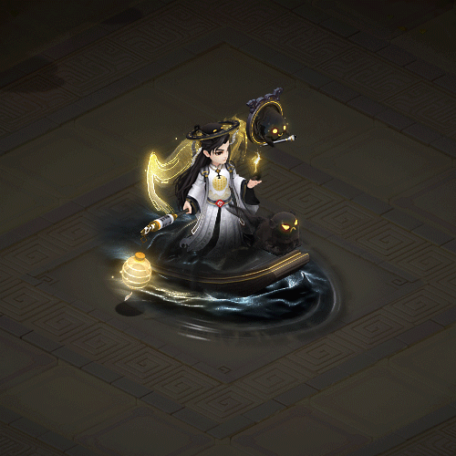 墨意巧化形,兰亭焕新生。作为诞生于王羲之《兰亭集序》书法真迹中的“永”,气质儒雅飘逸脱俗,散发着墨意书香。他手持一盏提灯站在一叶轻舟之上,水墨化为池水任他劈波前行。周身环绕着的金色飘带让他显得灵气十足,周身围绕着的墨灵也活泼可爱,看他从容不迫的样子,似乎无论面对什么样的战斗中也能成竹在胸游刃有余。