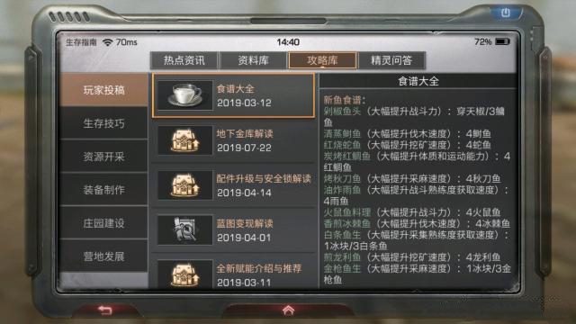 随着此次新版本增加的鱼类,以及钓鱼等级,与之匹配的“食谱”也升级。增加了11种食物,可以增加更多的buff。