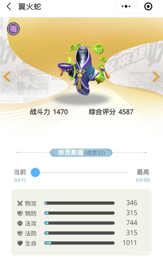 此前,皇甫公子作为唯一的毒系妖灵表现并不是很好,要输出没输出,要辅助没辅助,是一个很鸡肋的存在。翼火蛇的到来或许能改变毒系妖灵偏弱的这一局面。很多小伙伴认为翼火蛇技能伤害并不高,其实,其一技能能减弱对方法防,二技能削弱对方回血,这里我算一下一,二技能算上被动加成都是76.5%法攻,再算上20%破甲实际的技能伤害接近100%,其实伤害也不算低。建议有条件的也养一只,毕竟克制黄九狼和龙狮帝的不二之选。