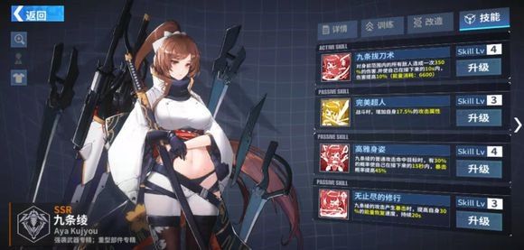 3.说说技能很多人觉得九条绫技能一般。说实话你们该去升级呀我觉得很强啊,因为是刷段伤害那么你攻击次数越多暴击就越多伤害自然就够,狙击单体爆发这货清场真的毒辣。