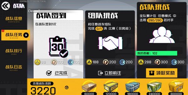 提升战队等级所需的经验可以通过战队任务这一界面来进行查看,每名战队成员积极达成任务都可以累计贡献。