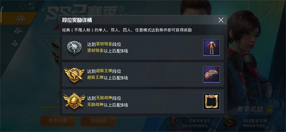 有关和平精英ss2赛季何时结束的相关介绍到这里就结束了,目前还没有获得全部SS2赛季奖励的玩家,可是要抓紧时间上分哦~