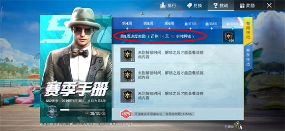 而我们如果想要知道ss2赛季何时结束的具体时间,我们需要手册的挑战来看,从“挑战”中看出本次的ss2赛季一共有9周,而现在我们连第9周的开启还要14天,加上第9周本来的7天。