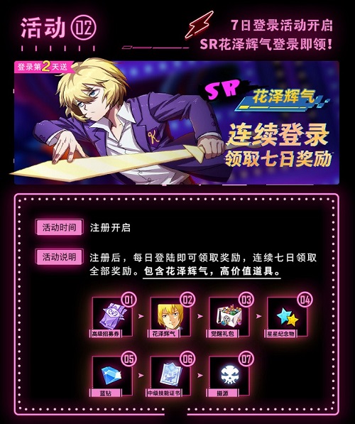 活动2 :登录即领SR花泽辉气!高价值道具天天送!