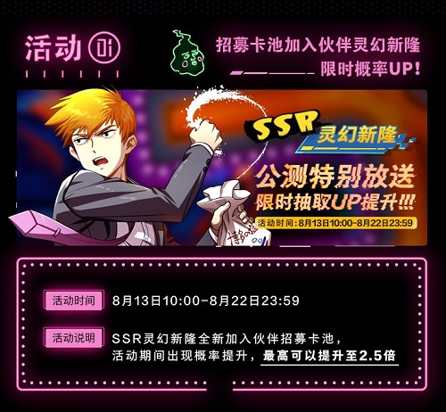 活动1:灵幻新隆限时概率UP!最高可提升至2.5倍!