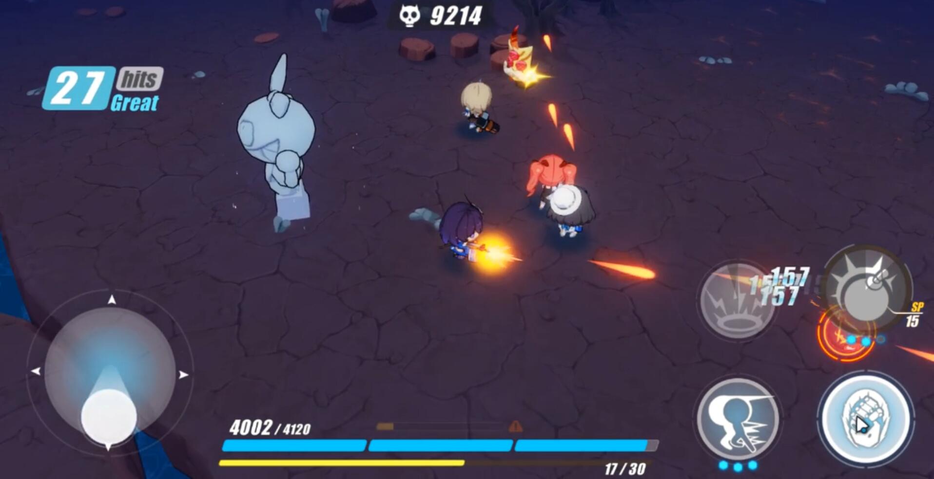 如果实在是手残打不过怎么办,这里还有一个办法,但必须要拥有两个角色,一个是理之律者,另一个是苍骑士月魂。这两个角色的使用武器都是喷火枪,属于AOE武器,对付这种一大群的敌人再好不过,选择你练度最高的角色,带出去绝对是好用的。