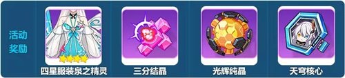 2)收集到的「漂流瓶」可兑换三分结晶、光辉纯晶、天穹核心、天命·虚数核心、进化材料自选箱、金徽纪念物等奖励。(其中金徽纪念物在25级开放兑换,天穹核心在30级开放兑换。)