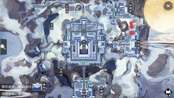 实际上如果玩家关注了更新公告,应该就能够注意到其中提到燕无回是华山的人,自然就最适合去华山找他。在图中玩家所处的坐标附近就可以看到燕无回,记得要双人结伴同游才能触发任务。