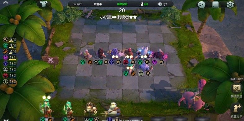 ③8回合5/6人口:这个时候你手上基本有好几个套路的卡牌,从侧边栏看一下你的对手玩的都是什么阵型,有什么卡,然后初步决定自己要玩的套路;
