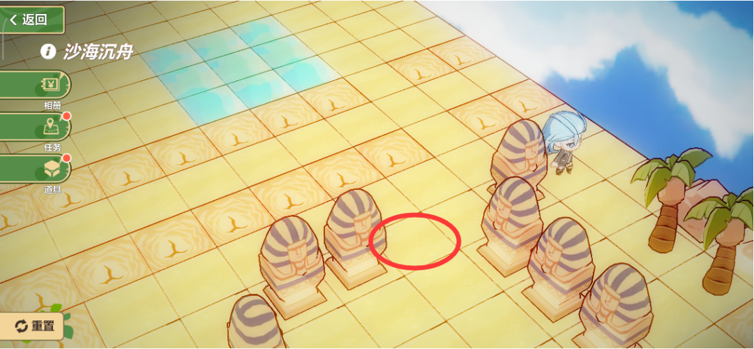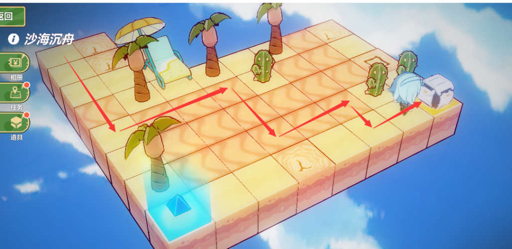 接着回到流沙区域,按照路线图收集两棵树中间的仙人掌