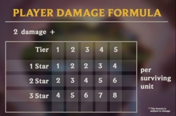 每个小小英雄都有100的血量,在每轮战斗结束后,落败的一方就会受到伤害。但这个伤害是怎样计算的呢,其实是有公式的。基础伤害是2点,玩家每有1个存活的英雄,就对敌人造成该英雄强度的伤害,英雄强度由英雄等级和英雄星级决定。