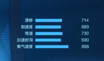 右上角会有一个赛车参数的“五芒星”展示,从“五芒星”中可以看到天浪拥有极其优越的集气速度性能,其他性能较为平均。