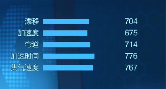 这款车整体属性比较均匀,重点突出在集气速度和加速时间上。可以看出这款车着重于竞速赛。加速时间属性上虽然不是很好,但可以通过强化进行提升。