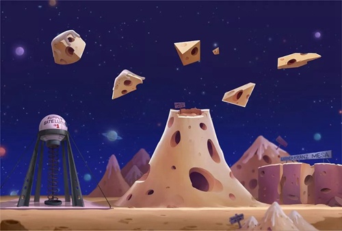 目前从曝光的概念图来看,小不点觉得这绝对是一个充满想象力的新场景!外太空星球上的山脉是奶酪做成的,房间里还摆放着精密的高科技仪器。