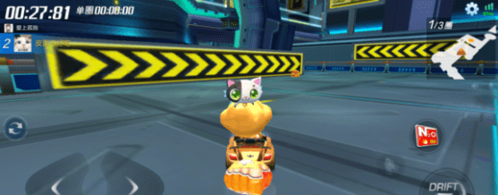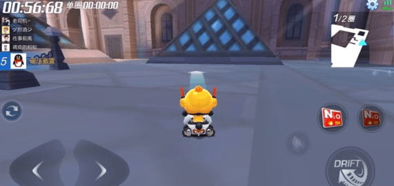 这里告诉大家需要注意一点,我们正常比赛都是从上图中的左侧行驶的,而我们的任务宝箱却是在面前这个大金字塔的后面,所以我们是不能走平时的路线的,如果走平时的路线,我们就需要回头逆行,但是游戏中的设定,系统会自动把逆行的车辆恢复到正常道路上,所以,如果你从错过了这个地方再回头拿会有难度哦!