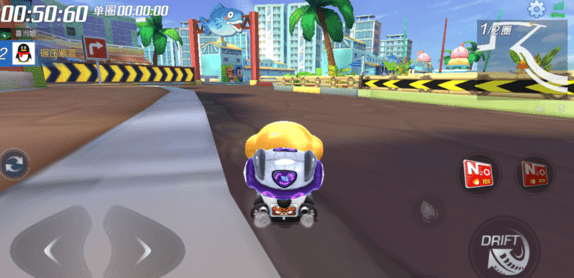 旋转木马地图,U型弯位置,跑道里面有一个宝箱,地图中间有个压板,一会儿高一会儿低的,在那转过弯后的路内侧,可能需要倒车捡,一个小宝箱。