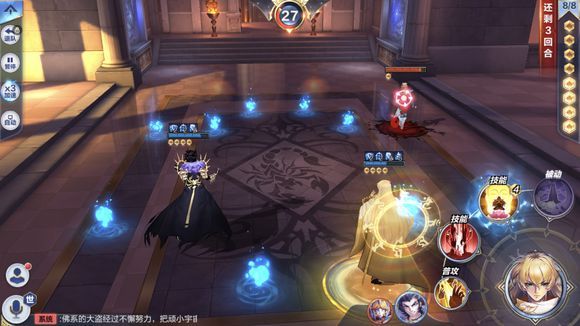 贵鬼补能量,冥王大,其他平A对面邪撒,第一回合对面2个撒加倒地后面利用隐身和纱织的复活,重点保护冥王和邪撒,一个个清小怪。