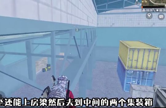 监狱旁边野点的大仓,可以顺着楼梯上去,然后向着墙边翻越,怕上集装箱,然后在跳到对面的房梁上,这个点真的就是一览众山下啊!需要小心的就是随便挪动就可能掉下去了!