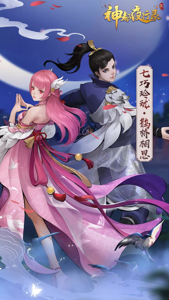 烟霄微月澹长空,银汉秋期万古同。七夕将至,牛郎织女鹊桥相会的动人故事又将在星空中上演,网易新概念妖灵大作《神都夜行录》也将推出众多精彩内容,除了寄托鹊桥相思的全新时装外,更有神秘妖灵降临洛阳,掀起七夕浪漫风暴!