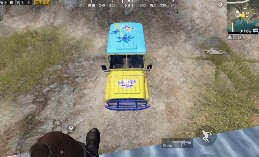 不是整个地图的车都是带皮肤的,目前小编在M城西边找到的这辆带皮肤的吉普车,而且只有硬顶的吉普车采用皮肤。这个,貌似是官方搞一个彩蛋。