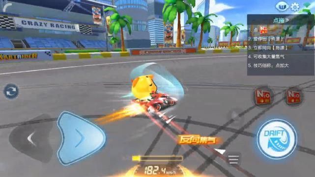 操作方式:点击氮气使用之后,轻按方向键和漂移键;在车身差不多开始划圈漂移后松开方向键和漂移键,让车头自然转过弯去。