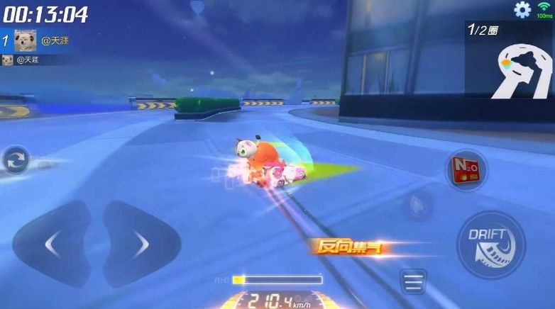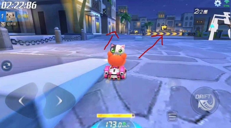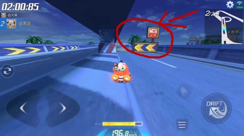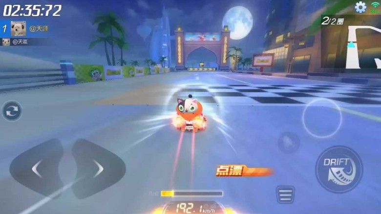 随后驶过运河我们经过一个直角弯后就会回到起点位置,所以我们一定要在手中保证一个氮气的同时使用掉多余的氮气,利用最后一个氮气在终点前的直线开始最终冲刺。