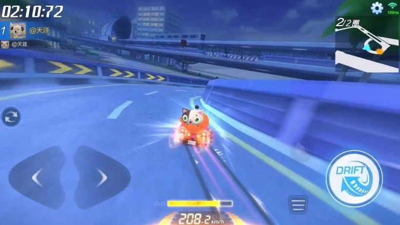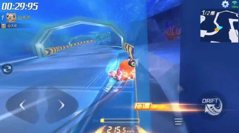 紧接着的这段海底隧道需要我们提前预判好时机漂移,在这里推荐大家在进入到隧道的同时开始漂移,如果漂移角度合理基本可以直接过弯;当然对于不熟悉地图的车手可以使用断位拉车头的方法多次漂移,配合双喷加速通过此处隧道。