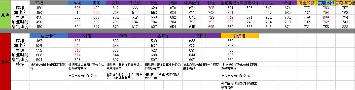 隐藏参数查不到有大神可以补充,比如说直道速度(个人猜测和弯道速度有关联),还有宠物碰碰猪提供碰撞防御也查不到,按照过去设定估计合金比较牛!