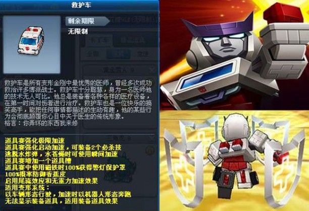 虽说超级警灯的功能一样没少,但是防御降到2秒,速度降到2秒,警灯降到2秒,曾经可都是5秒,多么不可一世,如今平平无奇,严重残缺的加速,比较残缺的警灯,跟一个还算完整的盾牌组合成的道具,跟铲车比,速度只是人家的一个零头,跟阿努比斯比,盾牌数量远远没有人家多,唯一的优势,是救护车的盾牌可以当警灯用,但区区两秒,能转到几次?
