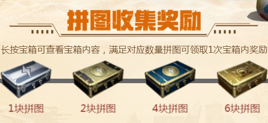 3.每获得1, 2, 4, 6块拼图即可开启宝箱领取奖励,每个宝箱限领1次。