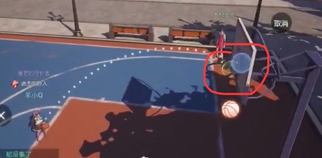 先去接取任务,玩家可以去学院的篮球场,这里去打篮球,到篮球板下面点击按键可以开始交互,就是开始打篮球了。