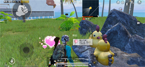 1、粉色爱心气球可以在情侣小黄鸡处,通过打卡获得。