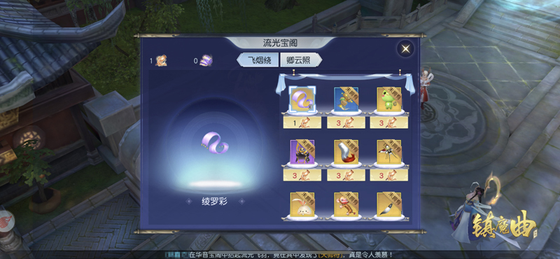 阁内有上古仙器,可视每一位天命者实际情况,于其中随机置入不同外观,且保证天命者未曾拥有。天命者以钱货启动,便可获其中之一。若连续启动30次,亦可自行指定选择某种钟意外观,或选择阁中专属代币飞烟绕、卿云照之一,以兑换属意之物。