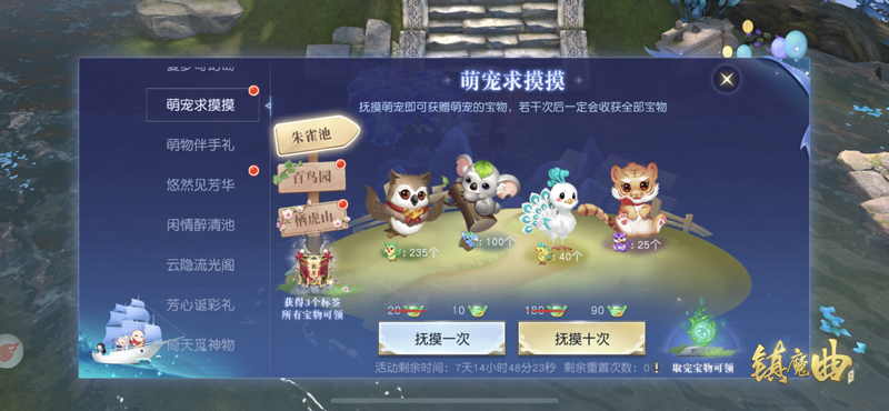 倦了累了,盛典上亦有小憩之所:挂机聊天,即可增长修为、提升实力;或测一测性格,若得少数派奖励,亦是意外之喜;若喜各类动物,三处仙兽园林中不同萌物正待天命者到来,抚弄嬉戏间,即有天材地宝入手!