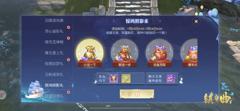 云隐流光阁长期开启,仲夏远航福利倒计时数日。仲夏时节,天命者可外观、实力两不误,以强绝一界之神威、炫酷无双之风姿,活跃于抗魔前线,留下独属于你的中州传说!神功灌顶,一键涅槃,变强之路从未如此轻松!若天命者尚奋进于修行途中,不妨启此仪式,直抵涅槃。如此,亦可早日化神,为抗魔前线添加强绝助力!