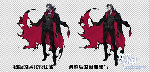 尽管美术小哥哥非常爱初版德古拉这张忧郁的帅大叔脸,但是为了让他更符合“BOSS”的气场,我们还是对德古拉的面部做了优化,增强了他邪气的感觉。