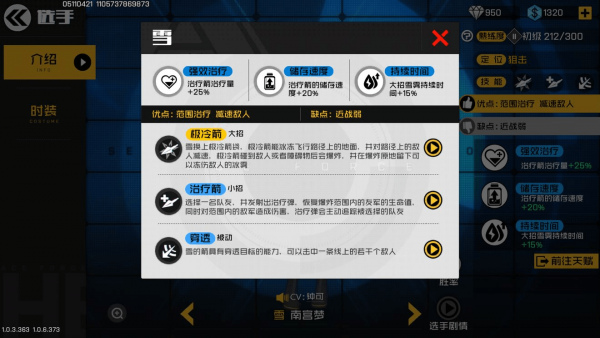 [精髓心得]"雪"的自保能力极强,熟练运用治疗箭可以大幅度的提升战场作战时间,而且两发毙敌伤害有了,回复也有了,就是近战需要多加练习,