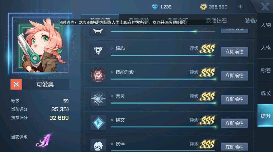 不是很懂的可以点提升看看,时装跟座驾不用急着弄,主要是下面几排一定要整好。