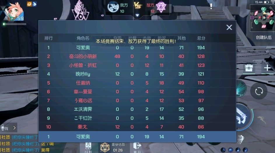 给你们看看,俺觉得俺的属性板是真的可以,对面胜利方都没我高的评分,死的少伤害高