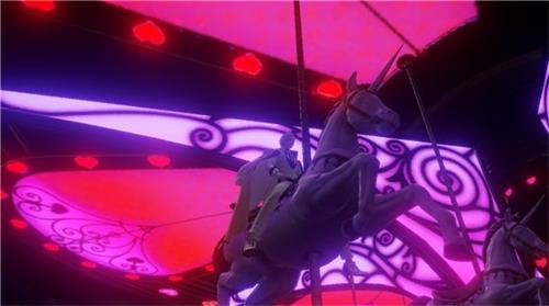 进入地图后,笔直的大路向前跑,不多久一个闪着红心的巨大建筑物就出现在我们眼前了!这个自然就是旋转木马了,从远处看是不是有点浮夸呢?但是也能理解,恋爱中的人心中都是粉红色,这也象征着爱情的美好,这里的红色指的是沉溺在恋爱中的男女,看所有东西也都会带点甜甜的滋味!让人回味无穷。