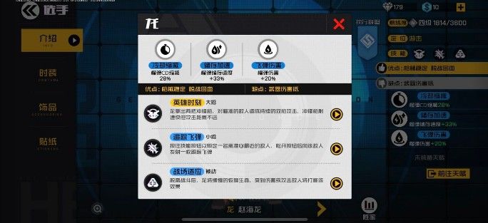 赵海龙:最适合新人上手的一个英雄,枪械基本上无后坐力,且不需要压枪,配合好小技能***炮打残对手再进行平a收割(小技能***炮是可以追踪的哦!)