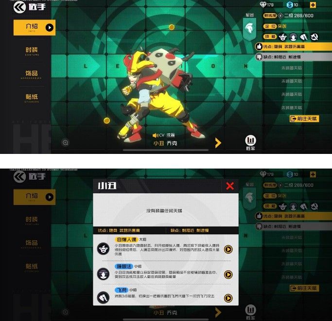小丑:小丑作为官方的亲儿子,我想就不用我过多介绍了,斧头伤害110,飞刀伤害65,3刀一个脆皮,无往不利,狙击手的克星,隐身后辅助瞄准失效,是任何游击和狙击的克星,大招范围极远,有4-5个身位,相信在座的各位被小丑"教育"过的有不少!