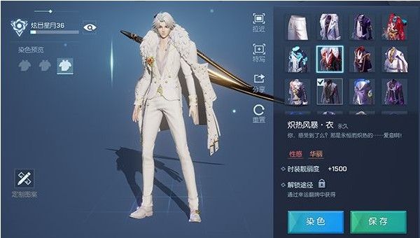 当然啦,如果你看上了外装的款式,但是颜色不喜欢,怎么办?没关系。在颜色预览这一块,每件外装都有1-3种颜色可以选择。我们选择了这件炽热风暴大衣服,就有黑色、蓝色、白色三种颜色可以选。我个人觉得白色的超级棒,你觉得呢?