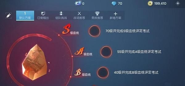 玩家先去升级,升级完之后就是去做血统的评定考试,点击自己的右上角任务,这里就有对应的考核,需要完成屠龙考核的新悦挑战E级可以解锁A级血统,达到70级挑战S级屠龙可以获得解锁S级血统,实力考核是需要核心等级、宠物进化到完全体等等去解锁。