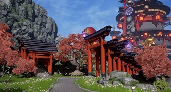 极乐馆和极乐馆外郊在地图的正下方,可以说是一个风景极美的地方,这里有颇具和风的木质建筑,宏伟不失精致,上面还有着次时代风格的装饰,给人的感觉非常神奇。近处是层叠交错的鸟居、长着青苔的岩石层、枫叶树摇曳着飘动,每一处都给人秋高气爽的和煦感。在这里如果有飞行坐骑,可以在空中俯瞰整个极乐馆外郊,景色优美一定不会令你失望。拍照给朋友们看,也能小小地炫耀一番。