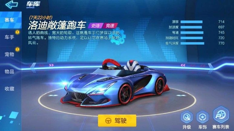 首充党必备卡丁车,沉稳的蓝色配上超级具有进攻性的大灯颜值超众,12R你买不了吃亏买不了上当。敞篷跑车的速度较比马拉松有着很大的优势,竞速时感觉车子较轻,弯道漂移需要比较精准的操作,否则很容易出现失误;新手用来练车即便车技不如对手但是气场已经完美压制住对方了。